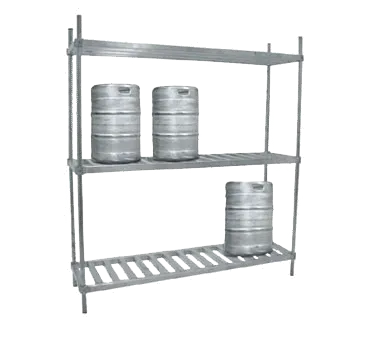 Meet the demands of your busy kitchen with the Advance Tabco Keg Rack. Designed to optimize your storage space, this robust and reliable Keg Rack measures 93 inches wide, 20 inches deep, and 76 inches high, making it an ideal addition to any bustling restaurant environment. The Advance Tabco Keg Rack features three sturdy shelves, capable of accommodating up to 10 kegs. The mid and bottom shelves are constructed of 1-3/4" square tubing running front to back, each boasting a load rating of 60 pounds per square foot. This ensures that even your heaviest kegs are securely supported. The top shelf, designed with 1-3/4" square tubing running left to right, has a load rating of 15 pounds per square foot, perfect for lighter items or additional storage needs. Built with durability in mind, the Keg Rack is constructed from high-quality aluminum, ensuring it withstands the rigors of a high-traffic kitchen. The 1-5/16" diameter posts provide additional stability, making this rack a reliable choice for your storage solutions. Whether you' re organizing your kegs for easy access or maximizing your storage efficiency, the Advance Tabco Keg Rack is the perfect solution. Its thoughtful design and robust construction make it an indispensable asset for any restaurant looking to streamline its operations and maintain a well-organized kitchen.