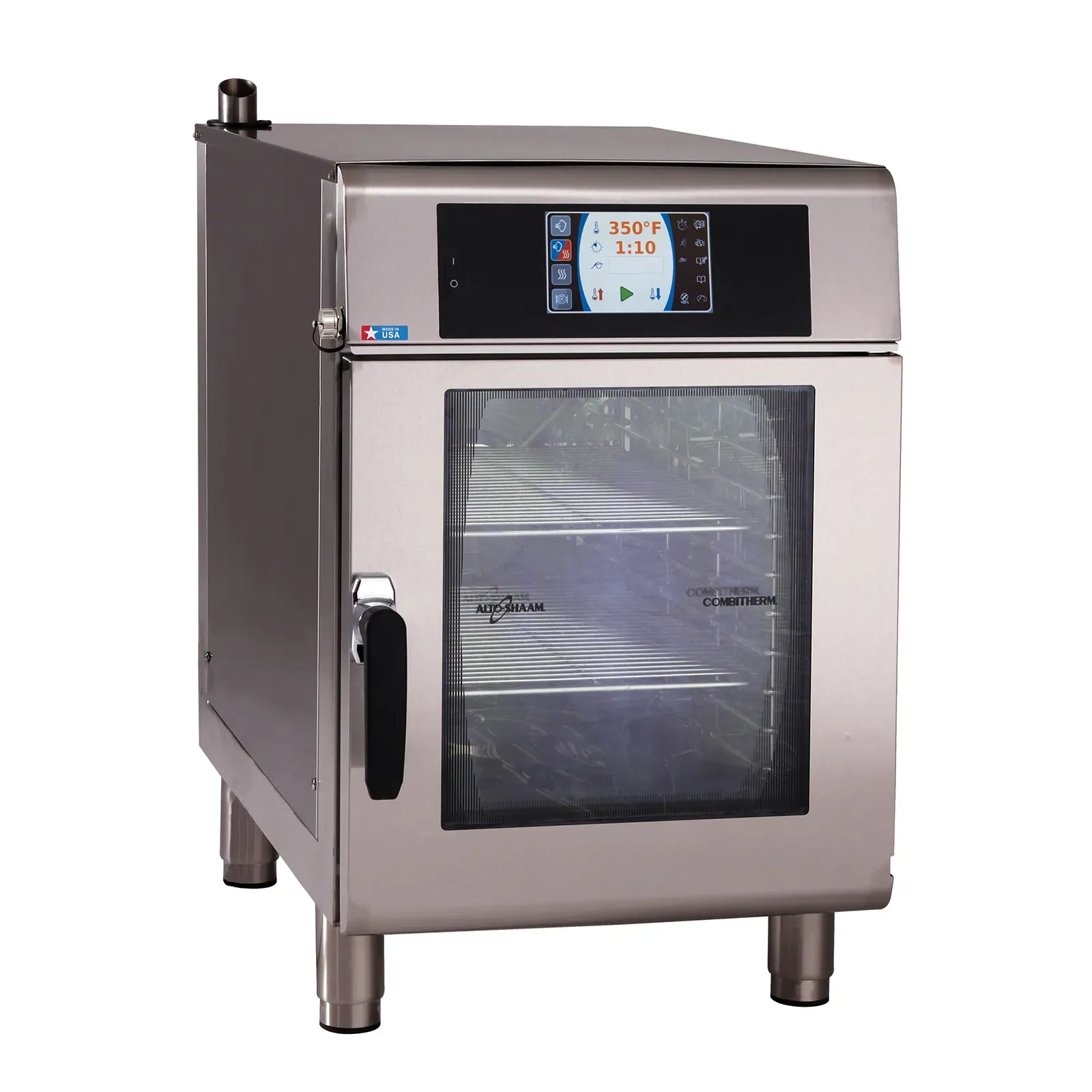 Unleash your inner chef with the Alto-Shaam CTX4-10EC Combi Oven. This electric countertop oven is a game-changer for commercial restaurants. With a capacity of (5) 12" x 20" full-size hotel pans or (10) 18" x 13" half-size sheet pans, it can handle large quantities of food with ease. The ExpressTouch control includes a two-speed reversing fan, retherm mode, moisture injection, and 6 browning levels, giving you complete control over your cooking. The integrated catalytic converter allows for ventless operation, making installation a breeze. Plus, the CombiClean system and hand sprayer kit ensure easy cleaning and maintenance. Made with stainless steel construction and adjustable bullet legs, this oven is built to last in a busy restaurant environment. With its energy-saving features and certifications like cULus, UL EPH ANSI/NSF 4, CE, EAC, and IPX4, the Alto-Shaam CTX4-10EC Combi Oven is a reliable and efficient choice for any commercial kitchen.