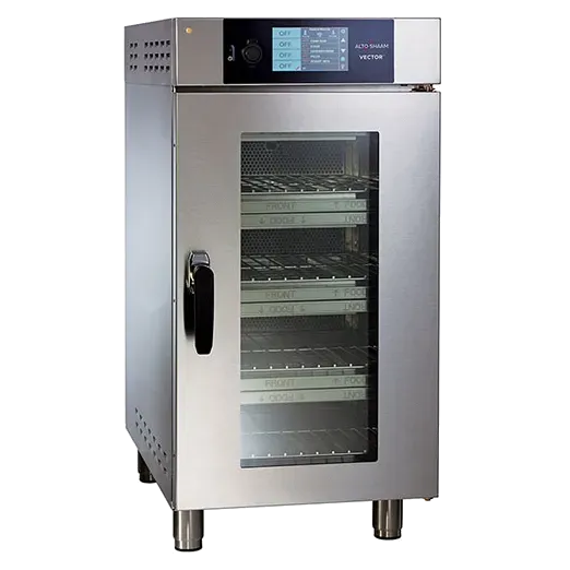 Unleash your kitchen's potential with the Alto-Shaam VMC-H4H Multi-Cook Oven. This electric oven is a game-changer for commercial restaurants, offering four individually controlled cooking chambers that can hold either four half-size sheet pans or four full-size hotel pans. With programmable touch screen controls and Structured Air Technology, you have complete control over the cooking process, ensuring consistent and delicious results every time. The double pane glass door not only provides a clear view of your culinary creations but also helps to maintain the oven's temperature. Plus, the ventless catalytic converter eliminates the need for a hood, making installation a breeze. Made in the USA with stainless steel construction and 4" adjustable legs, this oven is built to withstand the demands of a busy kitchen. Included with each cooking chamber are a wire rack and two jet plates, giving you even more versatility. Elevate your restaurant's cooking capabilities with the Alto-Shaam VMC-H4H Multi-Cook Oven.