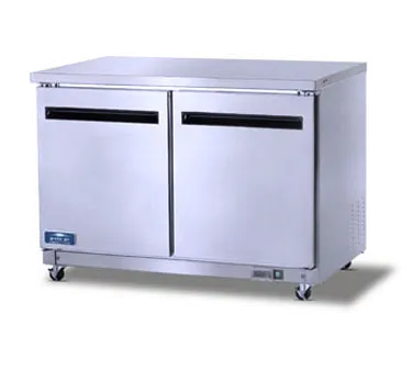 Chill with fine craftsmanship. The Arctic Air AUC48F is the perfect addition to any commercial restaurant setting. This 2-door undercounter freezer is designed with the utmost attention to detail, ensuring top-notch performance and durability. The stainless steel construction, including the easy-to-clean coved corners, guarantees longevity and easy maintenance. Equipped with a self-contained refrigeration system, this freezer can maintain a temperature range of negative 10 to 10 degrees Fahrenheit, making it ideal for storing a variety of frozen items. The two self-closing doors feature a heating element to prevent condensation, while the removable magnetic door gaskets ensure a tight seal. Loading and unloading is a breeze with the stay-open feature and foamed-in-place recessed handle. The electronic thermostat and exterior LED digital display help maintain accurate and consistent temperatures. With one adjustable wire shelf per section and four casters for easy mobility, the Arctic Air AUC48F is the ultimate freezer for commercial restaurant use.