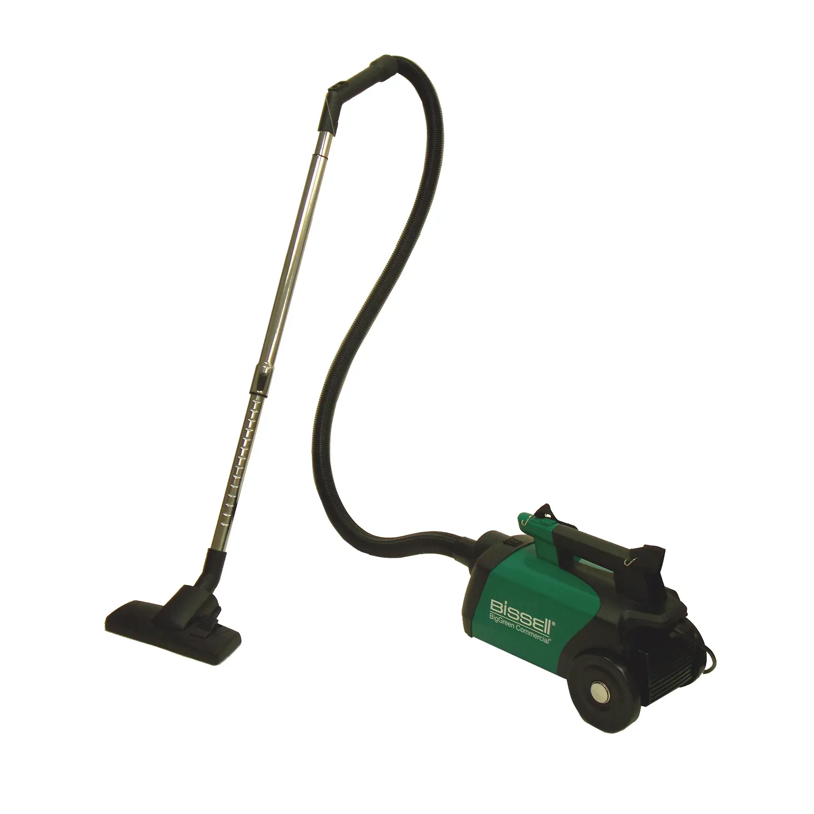 Introducing the Bissell Big Green Commercial, BGC3000 Vacuum Cleanera must-have for commercial restaurant owners who strive for spotless dining areas. This lightweight canister vacuum boasts a 2-liter capacity, ensuring efficient cleaning without frequent emptying. Equipped with a range of attachments, including a combo rug and floor tool with a swivel neck and rear wheels, crevice tool, upholstery tool, round brush, and metal telescope wand, this vacuum tackles every nook and cranny with ease. The non-marking rubber coated wheels and reinforced metal axle ensure smooth maneuverability and durability, while the 25 ft. cord allows for extended reach. Powered by the Ametek Advantek motor, delivering 1080 watts of power, this vacuum guarantees exceptional suction performance. With its cETLus certification, you can trust the Bissell Big Green Commercial, BGC3000 to deliver professional-grade cleaning results for your restaurant.