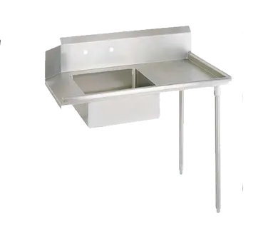 Equip your commercial kitchen with the BK Resources BKSDT-36-R Soiled Dishtable. This straight design dishtable is perfect for busy restaurant kitchens, offering a convenient and efficient solution for handling soiled dishes. Made with high-quality 18/304 stainless steel, this dishtable is built to withstand the demands of a commercial kitchen. It features a 10-inch high backsplash and raised rolled edges on the front and side to prevent spills and splashes. The 20" x 20" x 8" deep pre-rinse sink and 8" OC splash mount faucet holes provide ample space for washing and rinsing dishes. The dishtable also includes a basket drain for easy cleanup. With galvanized steel legs and side bracing, as well as high impact corrosion resistant adjustable bullet feet, this dishtable is built to last. NSF certified, this BK Resources dishtable is a reliable and durable addition to any commercial restaurant.