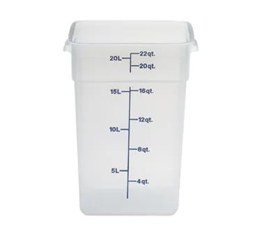 Experience the difference daily with Cambro's 22SFSPP190 Food/Beverage Storage Container. Designed for commercial restaurant use, this square 22-quart translucent container is a must-have for any food establishment. The durable construction of this container guarantees long-lasting performance, even in the busiest kitchen environments. Its translucent design allows for easy identification of contents, saving you time and effort. Whether you need to store prepped ingredients, leftovers, or bulk supplies, this food/beverage storage container is the perfect solution. Invest in Cambro's 22SFSPP190 and experience the convenience and efficiency it brings to your commercial kitchen.