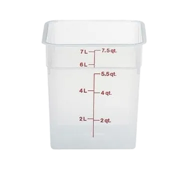 Stay ahead in the culinary landscape with Cambro's 8SFSPP190 Food/Beverage Storage Container. Designed for commercial restaurant use, this square 8-quart translucent container is a must-have for any professional kitchen. The durable construction ensures long-lasting performance, while the translucent design allows for easy identification of contents, saving you time and effort. Whether you're storing prepped ingredients, marinating meats, or keeping sauces and dressings ready for service, this food/beverage storage container is a versatile and essential tool. Invest in Cambro's 8SFSPP190 and streamline your restaurant operations with ease. Stay organized, efficient, and ahead of the competition with this top-quality storage solution.