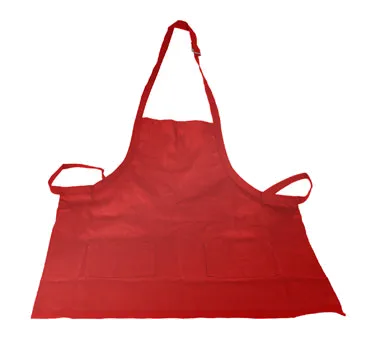 Introducing the Crestware BAR Bib Apron, a premium tool for crafting culinary excellence in commercial restaurants. Made with a poly/cotton twill blend, this apron is designed to withstand the demands of a busy kitchen. With a width of 25-1/2" and a length of 29", it provides ample coverage and protection. The two pockets offer convenient storage for essential tools, ensuring quick access during food preparation. Each apron is individually packed, guaranteeing hygiene and cleanliness. The vibrant red color adds a touch of style to the kitchen, while also making it easy to identify staff members. Trust Crestware, a reputable vendor known for their high-quality products, to provide you with the best apron for your commercial restaurant needs.