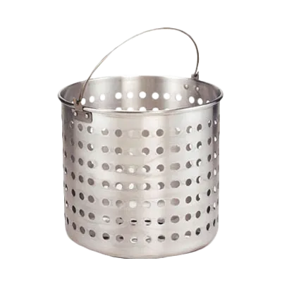 Modernize your kitchen for enhanced culinary experiences with the Crestware BSK50 Stock / Steam Pot Steamer Basket. Designed for commercial restaurant use, this steamer basket is a must-have for any professional chef. Made with durable aluminum, it fits perfectly in a 50 qt. stock pot, allowing you to steam large quantities of food at once. The approximately 5/8" holes ensure even and efficient steaming, while the bail handle and molded feet provide easy handling and stability. Whether you're steaming vegetables, seafood, or dumplings, this steamer basket delivers consistent results every time. With its high-quality construction and practical design, the Crestware BSK50 Stock / Steam Pot Steamer Basket is a reliable tool that will streamline your cooking process and help you create delicious dishes for your customers. Upgrade your kitchen equipment today and elevate your culinary creations to new heights.