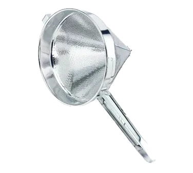 Innovative solutions for mastering the art of cooking. Introducing the Crestware CCS12F Strainer, China Cap / Chinois / Bouillon. Designed for commercial restaurant use, this 12-inch cap strainer is a must-have tool for any professional chef. Made from high-quality 18/8 stainless steel, it ensures durability and longevity, even with heavy use. With a fine mesh, it effectively strains soups, stocks, and sauces, removing any unwanted solids for a smooth and consistent texture. Its versatile design allows for easy handling and storage, while its sturdy construction guarantees reliable performance. Whether you're preparing delicate broths or hearty stews, this strainer is the ideal companion for achieving professional-grade results. Elevate your culinary creations with the Crestware CCS12F Strainer, China Cap / Chinois / Bouillon.