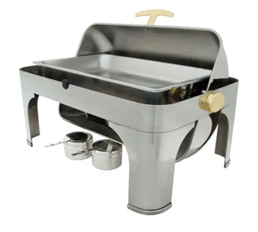 Craft culinary wonders with professional-grade gear. Introducing the Crestware CHAEL Chafing Dish, a must-have for any commercial restaurant. This high-quality chafing dish is designed to elevate your food presentation and keep it warm for hours. With a 7.8 qt. food pan capacity, you can easily serve large quantities of delicious dishes to your customers. The 304 stainless steel construction ensures durability and easy cleaning, while the brass accent side and lid handles add a touch of elegance. The full roll around top and half open catch make it convenient to access the food, while the rubber lid stops on the front and back prevent any accidental spills. The CHAEL Chafing Dish also comes with two fuel holders, providing a steady heat source. Upgrade your restaurant's buffet service with the Crestware CHAEL Chafing Dish and impress your customers with a professional and stylish presentation.