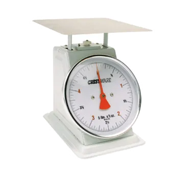 Equip your kitchen for superior culinary experiences with the Crestware SCA805 Scale, Portion, Dial. This heavy-duty scale is designed to meet the demands of a commercial restaurant setting. With a capacity of 5 lb. x 1/2 oz., it allows for precise portion control, ensuring consistent and accurate measurements for your recipes. The 8" dial provides clear and easy-to-read measurements, while the enameled body adds durability and longevity to the scale. Measuring at 10-1/2"H x 9"W x 10-1/2"D, it is compact enough to fit in any kitchen space. Trust Crestware, a reputable vendor in the industry, to provide you with reliable and high-quality kitchen equipment.