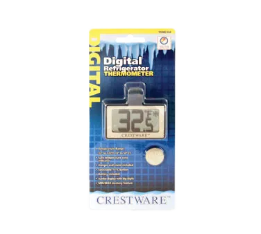 Introducing the Crestware TRME344 Thermometer, Refrig Freezer a premium tool for crafting culinary wonders in commercial restaurants. This digital refrigerator thermometer is a must-have for maintaining food safety and quality. With a temperature range of 32°F to 122°F, it ensures your ingredients are stored at the optimal temperature. The jumbo display and large numbers make it easy to read, even from a distance. The safe temperature zone indicator alerts you if the temperature goes beyond the recommended range, preventing spoilage and ensuring food stays fresh. You can choose between Fahrenheit and Celsius readings, depending on your preference. The thermometer comes with a hanger and stand, allowing for versatile placement options. Plus, the battery is included, so you can start using it right away. Trust Crestware for reliable and accurate temperature monitoring in your commercial kitchen.