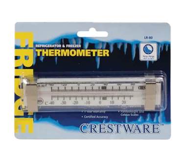 Create culinary masterpieces with precision tools. The Crestware TRMLR80 Thermometer is a must-have for any commercial restaurant. With its liquid scale and temperature range of -40 to 80F, this thermometer ensures accurate readings for refrigerators and freezers. The magnified Fahrenheit and Celsius scale allows for easy reading, even in busy kitchen environments. The non-corrosive plastic case provides durability and longevity, making it perfect for the demands of a commercial kitchen. NSF certified, this thermometer meets the highest standards of quality and safety. Whether you're monitoring the temperature of ingredients, checking the cooling process, or ensuring food safety, the Crestware TRMLR80 Thermometer is the ideal tool. Trust Crestware, a reputable vendor in the industry, to provide you with reliable and accurate temperature readings every time.