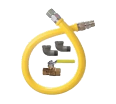 Streamline operations effortlessly with safe appliance positioning using the Dormont Manufacturing Gas Connector Hose Kit. This kit, model number 1675NPKIT36, is designed specifically for commercial restaurant use, ensuring the highest standards of safety and efficiency. The kit includes a 36" long gas connector hose coated with yellow antimicrobial PVC, providing protection against bacteria growth. It also features a full port valve and two 90-degree elbows for easy installation and flexibility. With a minimum flow capacity of 256,000 BTU/hr, this kit can handle the demands of high-powered appliances commonly found in commercial kitchens. Backed by a limited lifetime warranty, you can trust the quality and durability of this product. Don't compromise on safety or performance choose the Dormont Manufacturing Gas Connector Hose Kit for your commercial restaurant and experience peace of mind.