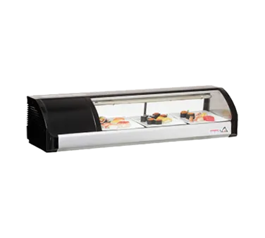 Kitchen innovation at its best, the Everest Refrigeration ESC47L Display Case is the perfect addition to any commercial restaurant. The self-contained left mounted refrigeration ensures optimal temperature control, while the two rear sliding glass doors provide easy access to the contents inside. With a capacity of 1.5 cu. ft., this display case can hold up to three plastic trays, allowing for efficient organization and presentation of your sushi offerings. The thermometer, certified by NSF, ensures accurate temperature monitoring, while the on/off power switch provides convenience and energy efficiency. Made with a stainless steel floor and using R290 Hydrocarbon refrigerant, this display case is not only durable but also environmentally friendly. Trust Everest Refrigeration for quality and reliability in your commercial kitchen.