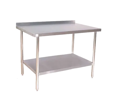 Maximize convenience with efficient tools like the Klingers Trading ABST2496 Work Table. Designed for commercial restaurant use, this work table offers a spacious and durable 96"W x 24"D stainless steel top, perfect for food preparation and plating. The 2"H rear up-turn and turned-down edges prevent spills and messes, ensuring a clean and organized workspace. With a stainless steel undershelf and legs, this work table provides additional storage space for utensils, ingredients, and equipment, keeping everything within reach. The adjustable bullet feet allow for easy leveling on uneven surfaces, ensuring stability and safety. Whether you're running a bustling kitchen or a busy catering service, this work table from Klingers Trading is a reliable and essential addition to your restaurant. Invest in quality and efficiency with the ABST2496 Work Table.