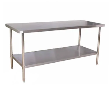 Revamp service with versatile option! Upgrade your commercial restaurant with the Klingers Trading AST3096 Work Table. This stainless steel table is designed to enhance efficiency and durability in a busy kitchen environment. With a spacious 96"W x 30"D work surface, it provides ample space for food preparation, plating, and other culinary tasks. The 18/430 stainless steel top features turned-down edges, ensuring a safe and clean workspace. Reinforced with three hat channels, this table offers exceptional strength and stability. The stainless steel undershelf and legs provide additional storage space for utensils, ingredients, and equipment, keeping everything within easy reach. Adjustable bullet feet allow for precise leveling on uneven floors. Whether you need a sturdy work surface for chopping vegetables or a reliable station for assembling dishes, the Klingers Trading AST3096 Work Table is the perfect choice for any commercial restaurant.