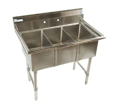 Enhance sustainability using practical alternatives with Klingers Trading, MCS3, Sink, (3) Three Compartment. This stainless steel sink is designed for commercial restaurant use, offering durability and functionality. With three 15" x 15" x 11" deep compartments, it provides ample space for washing and rinsing dishes, utensils, and cookware. The 8-1/2" backsplash and 8" OC splash mount faucet holes ensure a clean and organized workspace, while the stainless steel gussets, legs, crossbracing, and bullet feet provide stability and support. NSF certified, this sink meets the highest standards of cleanliness and hygiene. Its stainless steel construction makes it easy to clean and maintain, ensuring long-lasting performance. Whether you're running a busy restaurant or a bustling cafe, the Klingers Trading MCS3 Sink is the perfect addition to your commercial kitchen, offering convenience, efficiency, and sustainability.