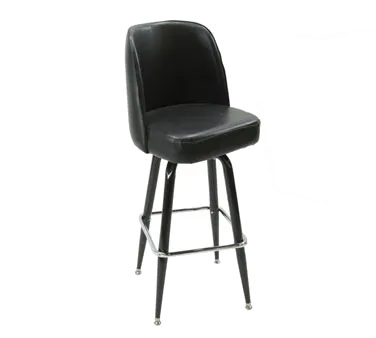 Introducing the Klingers Trading SR6-BARSTOOL, the perfect addition to any commercial restaurant setting. This swivel bar stool is designed with practicality and comfort in mind, streamlining your setup and enhancing the dining experience for your customers. The upholstered bucket seat provides optimal comfort, allowing your guests to relax and enjoy their meals. The cross-over base ensures stability and durability, making it suitable for high-traffic areas. With a sleek black frame and chrome footrest, this bar stool adds a touch of sophistication to your establishment. The black vinyl upholstery is not only stylish but also easy to clean, saving you time and effort. Whether you're running a bar, pub, or restaurant, the Klingers Trading SR6-BARSTOOL is the ideal choice for creating a welcoming and comfortable atmosphere. Trust Klingers Trading for quality and reliability.
