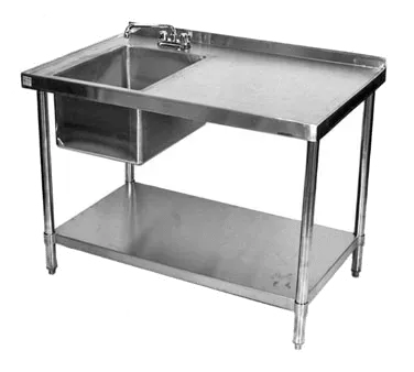 Maximize convenience with efficient tools in your commercial restaurant with the Klingers Trading STB3060BL Work Table with Prep Sink. This versatile work table is designed to streamline your food preparation process, making it a must-have for any busy kitchen. The 18/304 stainless steel top with a marine edge and 2" rear backsplash ensures durability and easy cleaning, while the 16"W x 20" front-to-back x 11" deep sink bowl with a deck-mounted faucet and drain basket allows for convenient washing and rinsing. The adjustable stainless steel undershelf provides additional storage space, and the stainless steel legs with adjustable bullet feet ensure stability on any surface. With ETL-Sanitation certification, you can trust that this work table meets the highest standards of cleanliness and hygiene. Upgrade your restaurant's efficiency and functionality with the Klingers Trading STB3060BL Work Table with Prep Sink.