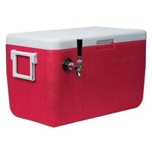 Master the art of flavor with the Micro Matic USA CB481R Draft Beer Special Event Dispenser. This high-quality jockey box coil cooler is designed to enhance your commercial restaurant's beverage service. With a 48-quart capacity and a 100/20 ft coil length, this dispenser can handle large volumes of draft beer with ease. The 3/8" coil with a 1/4" choke ensures a smooth and consistent flow, while the included faucet, shanks, and ice box coupler assemblies make setup a breeze. The heavy-duty side handles allow for easy transportation, and the 95 hold open lid with a snap-lock child safety latch ensures the safety of your staff and customers. The recessed drain plug makes cleaning and maintenance a simple task. With its striking red exterior, this dispenser is not only functional but also adds a touch of style to your establishment. Trust Micro Matic USA for all your draft beer dispensing needs.