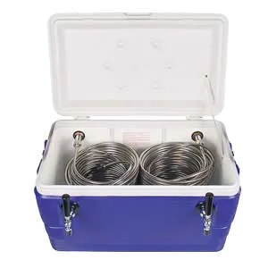 Elevate your dining experience with the Micro Matic USA CB482B Draft Beer Special Event Dispenser. This coil cooler is designed to meet the needs of commercial restaurants, ensuring a smooth and efficient beer dispensing process. With a 48-quart capacity and a 100/20 ft coil length, this dispenser can handle high volumes of beer, making it perfect for special events and busy establishments. The heavy-duty side handles allow for easy transportation, while the recessed drain plug ensures quick and hassle-free cleaning. The CB482B features two faucets and shanks, along with ice box coupler assemblies, providing convenience and versatility. The 95 hold open lid with a snap-lock child safety latch guarantees the safety of your customers. With its blue exterior, this dispenser adds a touch of style to any commercial restaurant setting. Trust Micro Matic USA, a reputable vendor in the industry, and invest in the CB482B Draft Beer Special Event Dispenser for a top-notch beer dispensing experience.