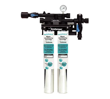 Optimize performance with the Scotsman AP2-P Water Filtration System for Ice Machines. This double system is specifically designed to enhance the efficiency and longevity of your ice makers and beverage equipment in a commercial restaurant setting. With its AquaPatrol Plus technology, this water filtration system ensures that your ice machines produce clean and clear ice cubes, flakes, and nuggets, making them perfect for high-volume operations. The Scotsman AP2-P is suitable for cubers over 650 lb and up to 1200 lb, as well as flakers and nuggets over 1200 lb. It is cULus and NSF certified, guaranteeing its quality and compliance with industry standards. Upgrade your ice machines and beverage equipment with the Scotsman AP2-P Water Filtration System and enjoy improved performance and superior ice quality.