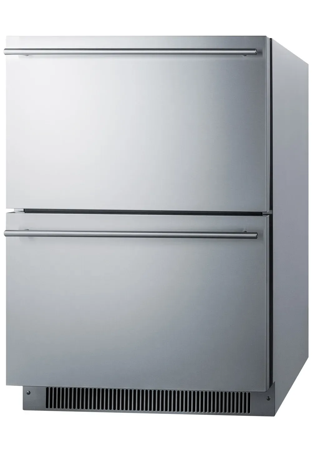 Ensure durability with the Summit Appliance ADRD24 Refrigeration. This 24" wide 2-drawer all-refrigerator is designed for indoor or outdoor use under standard or ADA compliant counters, making it a versatile choice for commercial restaurants. With a 4.8 cu.ft capacity, this ENERGY STAR certified refrigerator provides ample storage space for perishable items. The stainless steel construction not only adds a sleek and professional look to your kitchen but also ensures long-lasting durability. The ADA compliance guarantees easy access for all users, while the commercial listing ensures it meets the high standards of a busy restaurant environment. Whether you need to store ingredients, beverages, or prepared meals, the Summit Appliance ADRD24 Refrigeration is the perfect solution. Trust in its quality and functionality to keep your restaurant running smoothly.