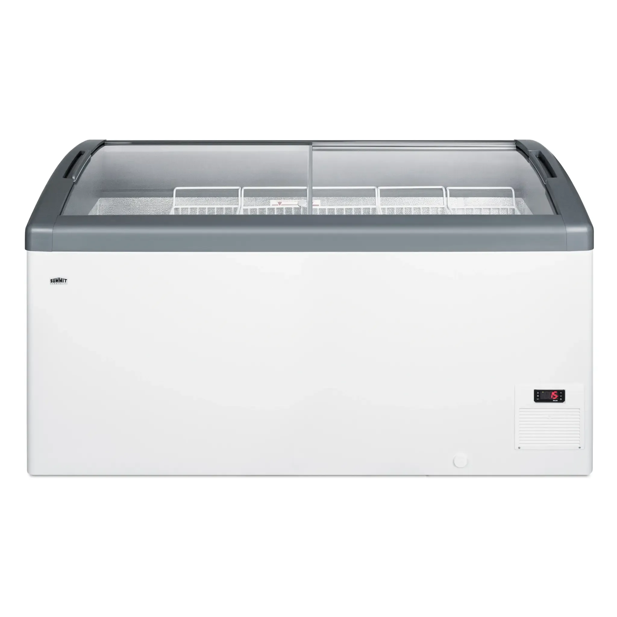 Enhance quality with the Summit Appliance FOCUS151 Chest Freezer. Designed for commercial restaurant use, this chest-style freezer offers a spacious 14.8 cu. ft. capacity to accommodate all your frozen goods. The two angled top sliding tempered glass lids provide easy access and visibility to your inventory, while the removable lock ensures the security of your valuable items. With a temperature range of -13F to 23F, you can confidently store a variety of frozen products. The FOCUS151 features five epoxy coated wire novelty baskets, allowing you to organize and separate different items. Its white exterior adds a clean and professional look to your establishment. This manual defrost freezer is equipped with four casters for easy mobility and uses R290 Hydrocarbon refrigerant for energy efficiency. Trust the Summit Appliance FOCUS151 Chest Freezer to meet your restaurant's freezing needs.