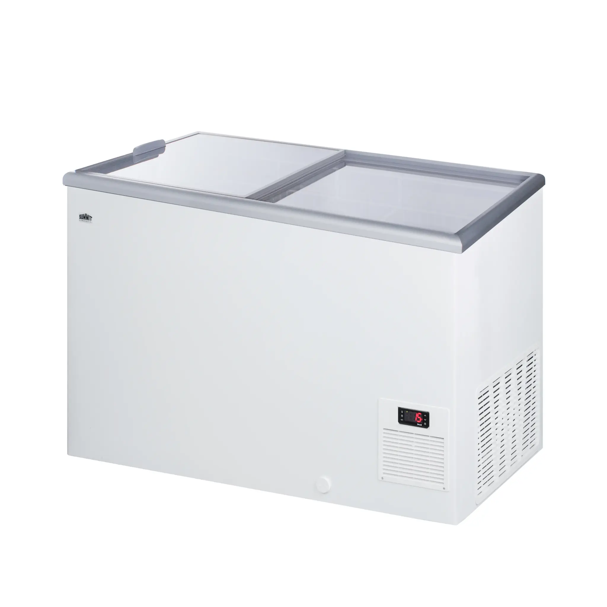 Optimize functionality with the Summit Appliance NOVA35 Chest Freezer. This chest-style ice cream freezer is designed to meet the demands of commercial restaurant use. With a spacious 11.7 cu.ft. capacity and two sliding tempered glass lids, it provides easy access to your frozen treats while keeping them visible to customers. The removable lock ensures the security of your inventory, while the digital thermostat allows you to adjust the temperature between -13F to 23F, ensuring optimal storage conditions. The NOVA35 also features two epoxy-coated wire baskets for organized storage and manual defrost for easy maintenance. Its white steel exterior is both durable and visually appealing, making it a great addition to any restaurant setting. With self-contained side-mounted refrigeration and the use of R290a Hydrocarbon refrigerant, this freezer is energy-efficient and environmentally friendly. Trust the Summit Appliance NOVA35 Chest Freezer to keep your frozen goods fresh and easily accessible in your commercial kitchen.