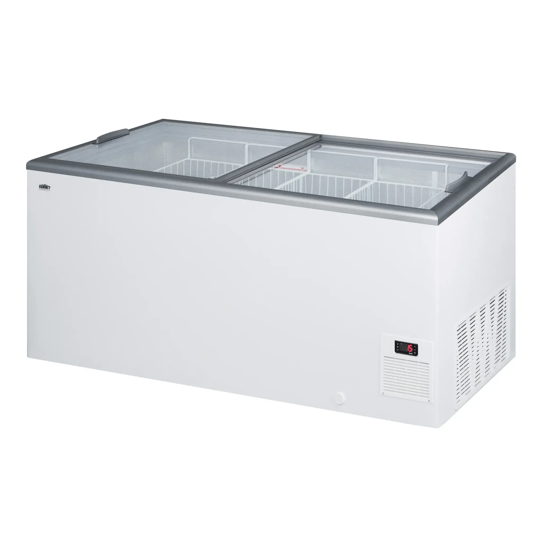 Ensure durability with the Summit Appliance NOVA53 Chest Freezer. Designed for commercial restaurant use, this chest-style freezer offers a spacious 16.6 cu. ft. capacity to accommodate all your frozen goods. With a temperature range of -13°F to 23°F, you can easily store ice cream, frozen desserts, and more. The two sliding tempered glass lids provide easy access to your products, while the removable lock ensures security. The manual defrost feature with a drain makes maintenance a breeze. The digital thermostat and controls allow for precise temperature adjustments, while the aluminum interior and white exterior offer durability and a clean look. Equipped with casters, this freezer can be easily moved for cleaning or rearranging. With its UL, ULC, and UL-Sanitation certifications, you can trust the quality and safety of this freezer. Upgrade your restaurant's freezing capabilities with the Summit Appliance NOVA53 Chest Freezer.
