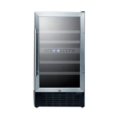 Embrace innovation with the Summit Appliance SWC182Z Wine Cellar Cabinet. This versatile wine cellar is perfect for commercial restaurant use, whether it's built-in or freestanding. With a reach-in design and dual temperature zones, you can store up to 28 bottles of wine at the perfect temperature. The digital thermostat ensures precise control, while the automatic defrost feature keeps maintenance hassle-free. The LED lighting illuminates your collection, creating an elegant display for your customers. The glass door with stainless steel trim adds a touch of sophistication, and the lock and two keys provide security for your valuable wines. The four wooden shelves offer ample storage space, and the black exterior finish complements any restaurant decor. With R600a refrigerant and ETL/cETL certification, this wine cellar is both efficient and reliable. Elevate your restaurant's wine selection with the Summit Appliance SWC182Z Wine Cellar Cabinet.