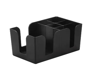 Innovate with quality solutions with TableCraft Products, 101, Bar Caddy. This sleek and practical bar caddy is a must-have for any commercial restaurant. With its compact design measuring 9-1/2" x 5-3/4" x 4", it provides ample space to organize and store essential bar tools and supplies. Made from durable ABS plastic, this bar caddy is dishwasher safe, ensuring easy cleaning and maintenance. Its black color adds a touch of sophistication to any bar setup. Whether you need to store napkins, straws, stirrers, or condiments, this bar caddy has you covered. The 1 each minimum order allows you to customize your bar area without excessive inventory. TableCraft Products, 101, Bar Caddy is the perfect solution to keep your bar area organized, efficient, and visually appealing. Elevate your restaurant's bar service with this high-quality bar caddy.