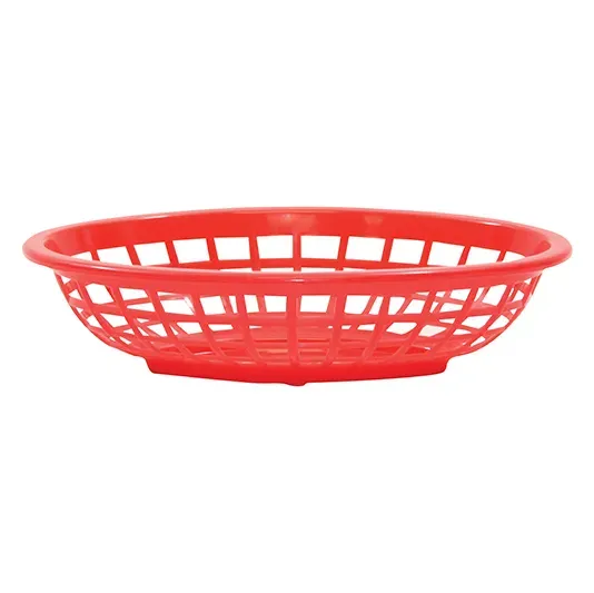 Introducing the TableCraft Products, 1071R, Basket, Fast Food, a must-have for commercial restaurants looking to optimize workflow efficiency. This oval side order basket measures 7-3/4" x 5-1/2" x 1-7/8" and is designed to withstand heat up to 150F/65C, making it perfect for use under heat lamps or in dishwashers and microwaves. Crafted from durable polyethylene, this red basket is not only heat-resistant but also dishwasher-safe, ensuring easy cleaning and maintenance. Made in the USA by TableCraft Products, this basket combines quality craftsmanship with practicality. Whether you're serving fries, onion rings, or other side dishes, this fast food basket is a reliable and stylish choice. Upgrade your restaurant's serving experience with the TableCraft Products, 1071R, Basket, Fast Food.