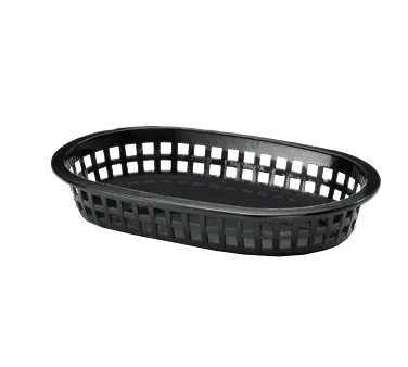 Set your restaurant apart with the TableCraft Products, 1073BK, Basket, Fast Food. This A La Carte Platter Basket is designed to elevate your food presentation and create a memorable dining experience. Made in the USA, this oval basket is heat resistant up to 150F/65C, making it perfect for use with heat lamps, dishwashers, and microwaves. Its durable polypropylene construction ensures long-lasting use, while its sleek black color adds a touch of sophistication to any table setting. With a size of 8-1/2" x 6" x 1-1/2", this basket is ideal for serving a variety of dishes, from appetizers to main courses. Upgrade your restaurant's presentation with the TableCraft Products, 1073BK, Basket, Fast Food.