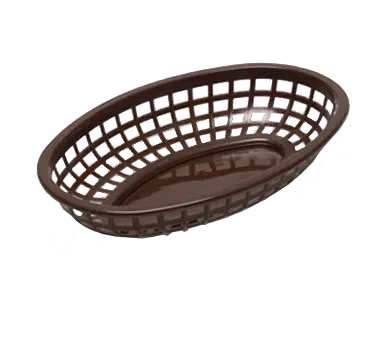Enhance tabletop aesthetics with the TableCraft Products, 1074BR, Basket, Fast Food. This classic oval basket is designed to elevate the presentation of your dishes in a commercial restaurant setting. Made in the USA, it is crafted from heat-resistant polyethylene, ensuring durability and longevity. The 9-3/8" x 6" x 1-7/8" size is perfect for serving a variety of fast food items, from burgers and fries to sandwiches and appetizers. The brown color adds a touch of warmth and sophistication to any table. With a heat lamp, dishwasher, and microwave-safe design, this basket offers convenience and versatility. Elevate your restaurant's dining experience with the TableCraft Products, 1074BR, Basket, Fast Food.