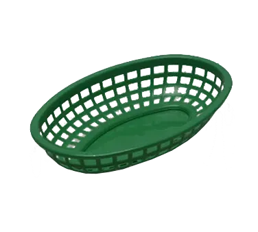 Elevate culinary experiences with TableCraft Products' 1074FG Fast Food Basket. This classic oval basket is designed to enhance the presentation of your delicious dishes. Measuring 9-3/8" x 6" x 1-7/8", it provides ample space for serving a variety of menu items. Made in the USA with heat-resistant polyethylene, this forest green basket is not only durable but also safe for use under heat lamps, in dishwashers, and even in microwaves. Its vibrant color adds a touch of elegance to any table setting, while its sturdy construction ensures long-lasting performance. Upgrade your restaurant's dining experience with TableCraft Products' 1074FG Fast Food Basket.
