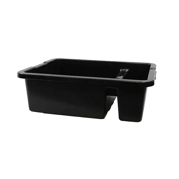 Boost restaurant functionality with the TableCraft Products, 1547B Bus Box/Tub. This heavy-duty, high-density polyethylene tote box is designed to streamline operations in a commercial restaurant setting. With reinforced handles and a stackable design, it offers convenience and durability. The pebbled finish outside not only adds a touch of style but also provides a non-slip surface for easy handling. The divided compartments allow for efficient organization and separation of different items, while the dishwasher-safe feature ensures effortless cleaning. Made in the USA and FDA approved, this bus box/tub meets the highest quality standards. Whether you need to transport dishes, utensils, or ingredients, the TableCraft Products, 1547B Bus Box/Tub is the ideal choice for enhancing efficiency and maintaining a well-organized kitchen.