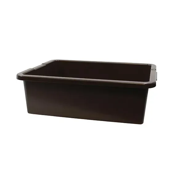 Transform tabletop settings with the TableCraft Products, 1557BR Bus Box/Tub. This heavy-duty, high-density polyethylene tote box is designed for commercial restaurant use, making it the perfect addition to any kitchen. With reinforced handles and a stackable design, this bus box is built to withstand the demands of a busy restaurant environment. The pebbled finish on the outside provides a non-slip grip, ensuring safe and secure handling. Not only is this bus box dishwasher safe, but it is also FDA approved, guaranteeing its safety for food contact. Made in the USA and NSF certified, this bus box is a reliable and authentic choice for any restaurant. Upgrade your restaurant's efficiency and cleanliness with the TableCraft Products, 1557BR Bus Box/Tub.