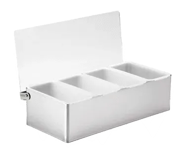 Stay ahead in culinary excellence with the TableCraft Products, 1604, Bar Condiment Holder. This stainless steel condiment holder is designed to elevate your restaurant's efficiency and organization. With four compartments, it provides ample space to store and display various condiments, ensuring easy access for your staff and customers. The acrylic lid keeps the condiments fresh and protected from contaminants, while the dishwasher-safe design allows for quick and convenient cleaning. Its compact size of 12" x 5-3/4" x 3-1/2" makes it ideal for any bar or countertop. Whether you're running a busy bar or a bustling restaurant, this condiment holder is a must-have for streamlining your operations. Trust TableCraft Products, a reputable vendor in the industry, to deliver quality and functionality to your establishment. Elevate your restaurant's condiment game with the TableCraft Products, 1604, Bar Condiment Holder.