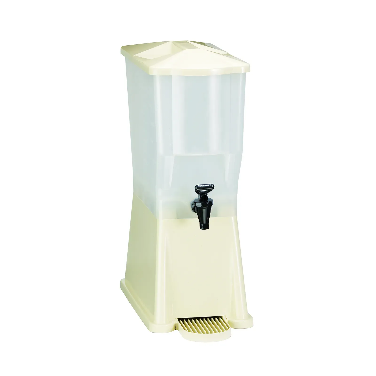 Introducing TableCraft Products, 356DP, Beverage Dispenser, Non-Insulated, a premium tool for restaurant success. This slimline beverage dispenser is designed to meet the demands of commercial restaurant use. With a capacity of 3 gallons, it ensures an ample supply of refreshing beverages for your customers. The dispenser's FDA-approved polypropylene construction guarantees durability and safety, while the almond color adds a touch of elegance to any setting. The standard Tomlinson faucet allows for easy and controlled dispensing, while the 8-1/4" faucet clearance accommodates a variety of cup sizes. This dispenser is NSF certified, ensuring it meets the highest standards of quality and sanitation. Whether you're serving iced tea, lemonade, or fruit-infused water, the TableCraft Products, 356DP, Beverage Dispenser, Non-Insulated is the perfect addition to your restaurant's beverage service. Elevate your customers' dining experience with this reliable and stylish dispenser.