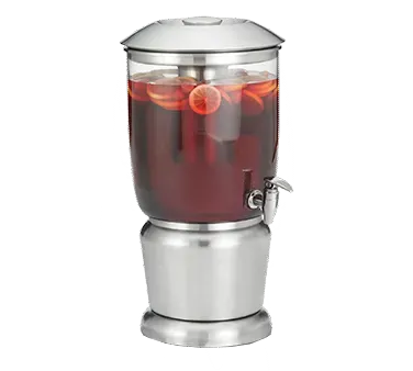 Upgrade your commercial restaurant with the TableCraft Products, 75, Beverage Dispenser, Non-Insulated. This cash and carry dispenser is designed for superior performance, making it the perfect addition to any foodservice establishment. With a 2-1/2 gallon capacity, it can hold a large quantity of beverages, ensuring that your customers never go thirsty. The BPA-free Tritan reservoir is not only durable but also safe for use with food and beverages. The removable stainless steel infuser allows you to add flavor to your drinks, while the ice core and lid keep them chilled for longer. The stainless steel double wall base with a brushed finish adds a touch of elegance to your beverage station. Hand wash only. Upgrade your restaurant's beverage service with the TableCraft Products, 75, Beverage Dispenser, Non-Insulated.