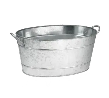 Introducing the TableCraft Products BT1914 Beverage/Ice Tub, the perfect addition to elevate your restaurant's reputation. This galvanized steel tub is designed specifically for commercial restaurant use, with a generous 5-1/2 gallon capacity to keep your beverages chilled and easily accessible. Measuring 19" x 14" x 9" in an oval shape, this beverage tub is not only functional but also adds a touch of rustic charm to your establishment. Hand wash only, this tub is built to withstand the demands of a busy restaurant environment. With TableCraft Products' commitment to quality and durability, you can trust that this beverage tub will stand the test of time. Whether you're hosting a special event or simply looking to enhance your beverage service, the TableCraft Products BT1914 Beverage/Ice Tub is the perfect choice for your restaurant.