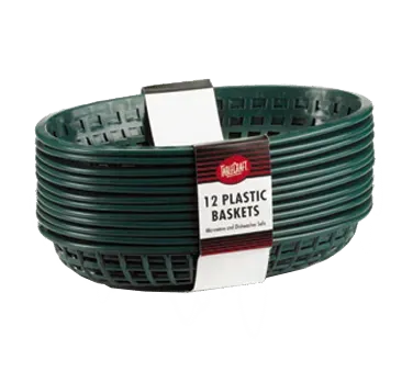 Experience the difference with TableCraft Products, C1074FG, Basket, Fast Food. These Cash & Carry Classic Baskets are a must-have for any commercial restaurant. With a size of 9-3/8" x 6" x 1-7/8", these oval baskets are perfect for serving a variety of dishes. Made in the USA, they are heat resistant up to 150F/65C, making them ideal for use with heat lamps, dishwashers, and microwaves. The forest green color adds a touch of elegance to any table setting. These durable plastic baskets are designed to withstand the rigors of a busy restaurant environment. Whether you're serving burgers, fries, or other fast food items, these TableCraft baskets are the perfect choice. Elevate your restaurant's presentation and efficiency with these high-quality, restaurant-grade baskets.