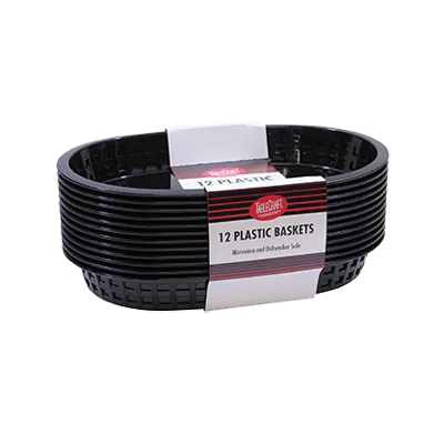 Introducing the TableCraft Products, C1076BK, Basket, Fast Food, a must-have for commercial restaurants looking to elevate their reputation. Made in the USA, this oval black plastic basket is designed to withstand the demands of a busy restaurant environment. With dimensions of 10-1/2" x 7" x 1-1/2", it offers ample space for serving a variety of dishes. The heat-resistant material ensures it can withstand temperatures up to 150F/65C, making it suitable for use with heat lamps, dishwashers, and microwaves. Whether you're serving burgers, fries, or other fast food items, this TableCraft basket is a stylish and practical choice. Enhance your restaurant's presentation and efficiency with this durable and versatile fast food basket.