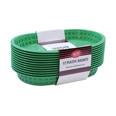 Upgrade your kitchen capabilities with the TableCraft Products C1076G Fast Food Basket. Designed for commercial restaurant use, this oval basket is perfect for serving a variety of dishes. With dimensions of 10-1/2" x 7" x 1-1/2", it provides ample space for burgers, fries, sandwiches, and more. The heat-resistant plastic construction ensures durability and allows for safe use with heat lamps, dishwashers, and microwaves. Its vibrant green color adds a pop of color to your food presentation, while the Made in USA label guarantees authenticity and quality. Elevate your food presentation and enhance the dining experience with the TableCraft Products C1076G Fast Food Basket.