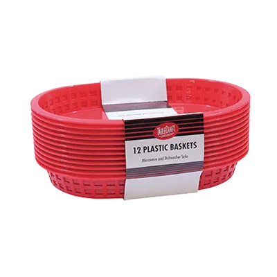 Boost restaurant functionality with the TableCraft Products, C1076R, Basket, Fast Food. This oval-shaped basket is designed to enhance the dining experience in commercial restaurants. Made in the USA, it is heat resistant up to 150F/65C, making it perfect for use with heat lamps, dishwashers, and microwaves. The red plastic construction adds a vibrant touch to any table setting, while the 10-1/2" x 7" x 1-1/2" size provides ample space for serving a variety of dishes. Whether you're serving burgers, fries, or other fast food favorites, this TableCraft basket is a durable and practical choice. Elevate your restaurant's presentation and efficiency with this versatile and stylish fast food basket.