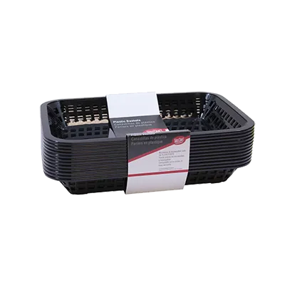 Seamless food preparation just got easier with TableCraft Products' C1077BK Fast Food Basket. Designed specifically for commercial restaurant use, this rectangular basket is a must-have for any food establishment. With dimensions of 10-3/4" x 7-3/4" x 1-1/2", it provides ample space for serving a variety of dishes. Made from heat-resistant polypropylene, this basket can withstand temperatures up to 150F/65C, making it perfect for use with heat lamps, dishwashers, and microwaves. Its sleek black color adds a touch of sophistication to any table setting. Manufactured in the USA by TableCraft Products, this Fast Food Basket combines durability, functionality, and style, making it an essential tool for efficient food service.