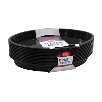 Set your restaurant apart with the TableCraft Products, C1086BK Fast Food Basket. Made in the USA, this oval-shaped basket is designed to enhance the dining experience in commercial restaurants. Its heat-resistant properties up to 150F/65C make it perfect for serving hot dishes under heat lamps. The dishwasher and microwave-safe polypropylene material ensures easy cleaning and reheating. With dimensions of 12-3/4" x 9-1/2" x 1-1/2", this black basket provides ample space for serving a variety of food items. The TableCraft Products Fast Food Basket is a must-have for any restaurant looking to add a touch of authenticity and practicality to their dining experience.