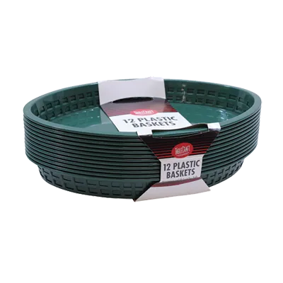 Create a seamless dining experience with TableCraft Products, C1086FG, Basket, Fast Food. These Cash & Carry Texas Baskets are perfect for commercial restaurant use. Made in the USA, these oval baskets are heat resistant up to 150F/65C, making them ideal for serving hot food. The forest green color adds a touch of elegance to any table setting. With dimensions of 12-3/4" x 9-1/2" x 1-1/2", these baskets provide ample space for serving a variety of dishes. They are heatlamp, dishwasher, and microwave safe, ensuring easy cleaning and versatility. The polypropylene material ensures durability and longevity, making these baskets a cost-effective choice for busy restaurants. Elevate your dining experience with TableCraft Products, C1086FG, Basket, Fast Food.