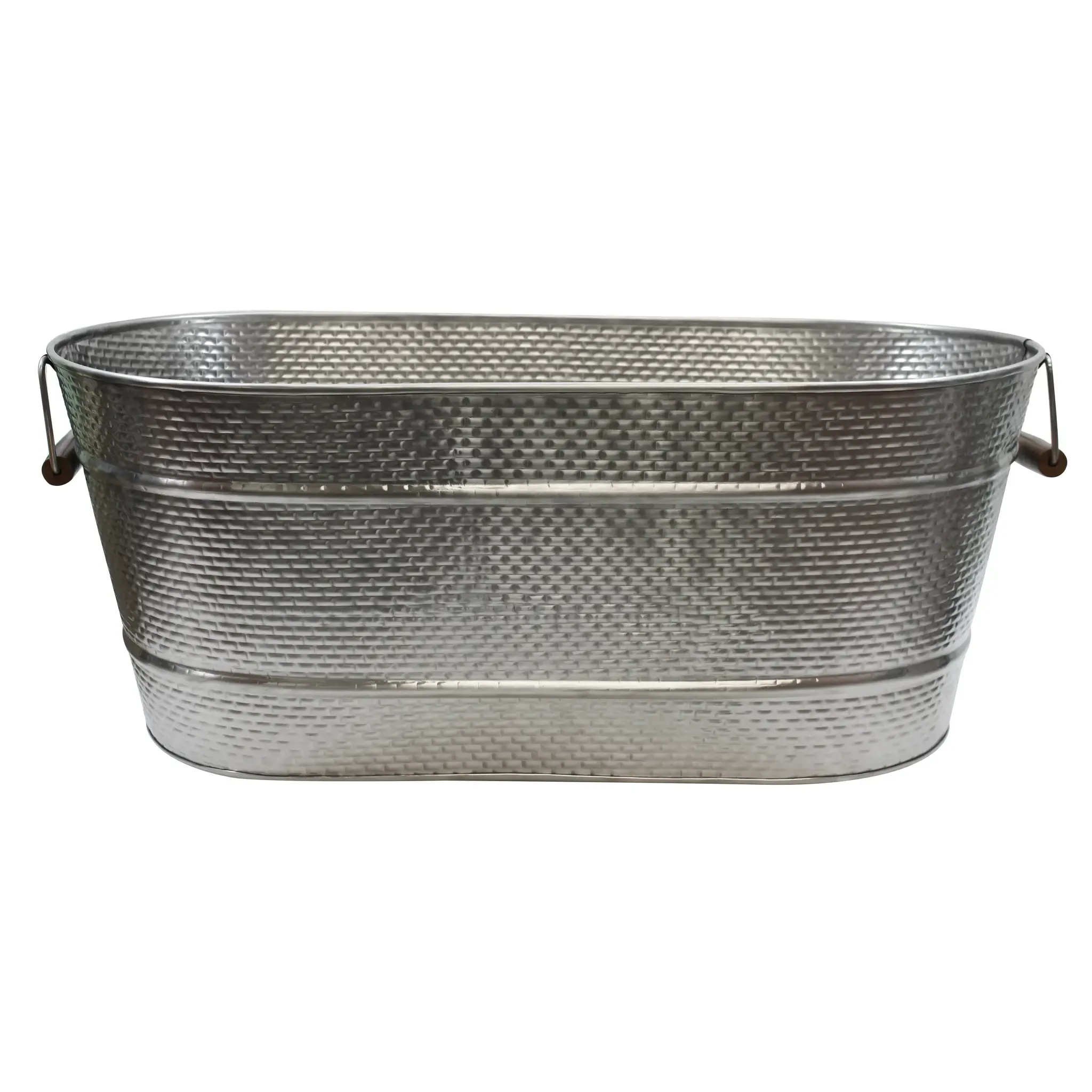 Introducing the TableCraft Products GTSS2313 Beverage/Ice Tub, designed to elevate your restaurant's reputation. This 12-3/4 gallon tub is a must-have for any commercial restaurant setting. With its brick pattern texture and stainless steel construction, it exudes both style and durability. The spacious dimensions of 27-1/2" x 15" x 10-3/4" allow for ample storage of beverages and ice, ensuring your guests are always refreshed. The GTSS2313 is packed by TableCraft Products, a trusted name in the industry, guaranteeing quality and reliability. Whether you're hosting a large event or simply need a convenient way to keep drinks chilled, this beverage/ice tub is the perfect solution. Its sleek design and commercial-grade construction make it a standout addition to any restaurant, enhancing both functionality and aesthetics. Elevate your restaurant's beverage service with the TableCraft Products GTSS2313 Beverage/Ice Tub.