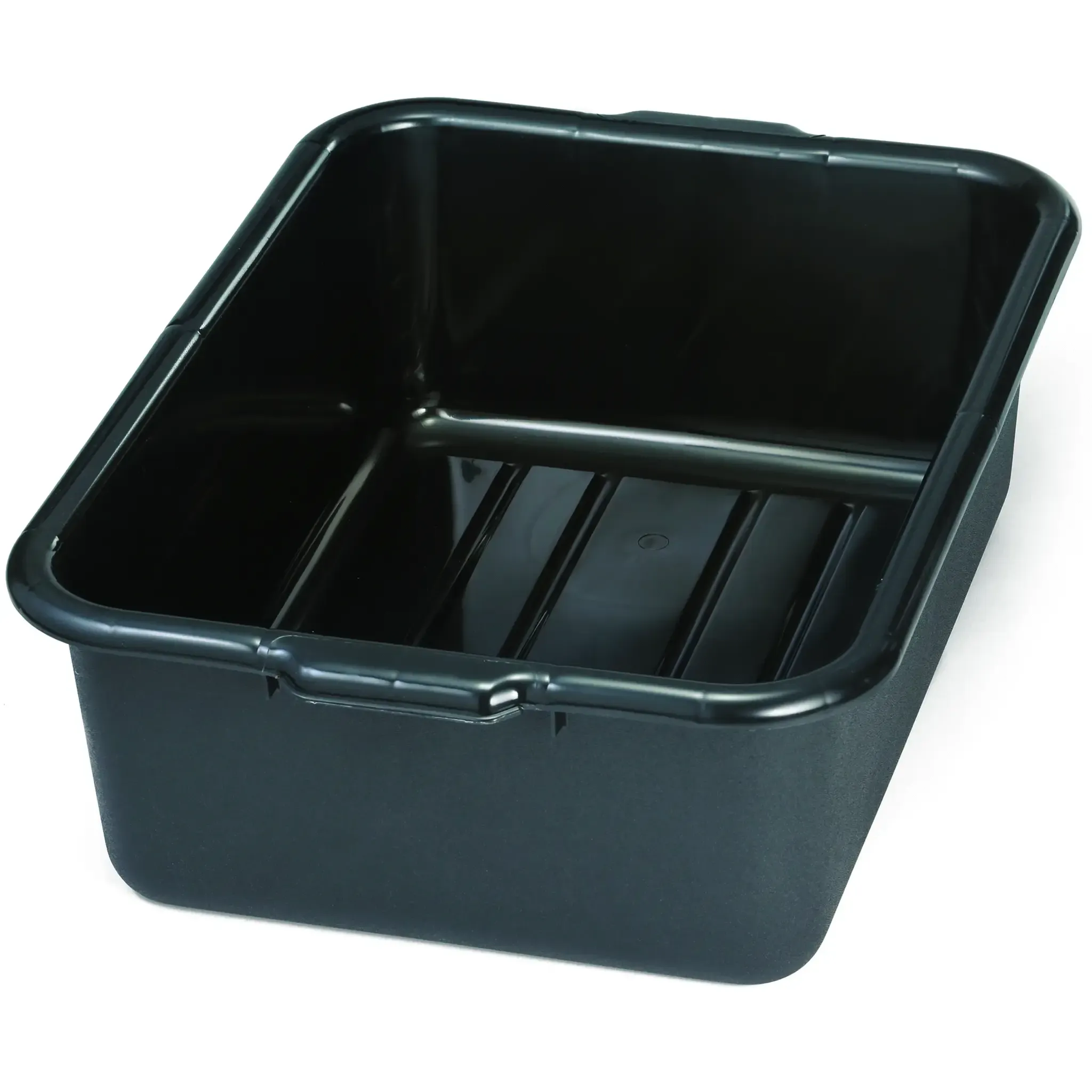 Introducing the TableCraft Products, P1537B Bus Box/Tub, a must-have for any commercial restaurant! This stackable tote box is designed to streamline your operations and create a seamless experience. Made in the USA with high-density polyethylene, this black bus box/tub is not only dishwasher safe but also FDA approved and NSF certified. Its reinforced handles ensure durability, while the pebbled finish outside adds a touch of style. With a generous size of 21-1/2" x 15-3/4" x 7", this bus box/tub offers ample space for storing and transporting dishes, utensils, and more. Whether you're running a bustling restaurant or a busy catering service, the TableCraft Products, P1537B Bus Box/Tub is the ideal solution for efficient organization and easy cleanup.